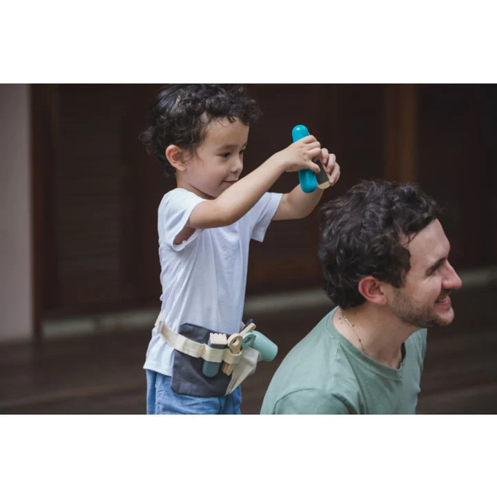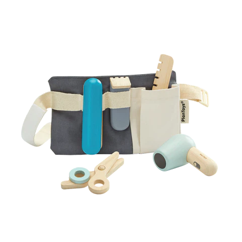 Let your little one’s imagination run wild and enjoy playing together with this hairdresser set! With the wooden scissors, hairdryer, comb, straightener, clipper, and waist bag, the experience becomes even more realistic and fun.