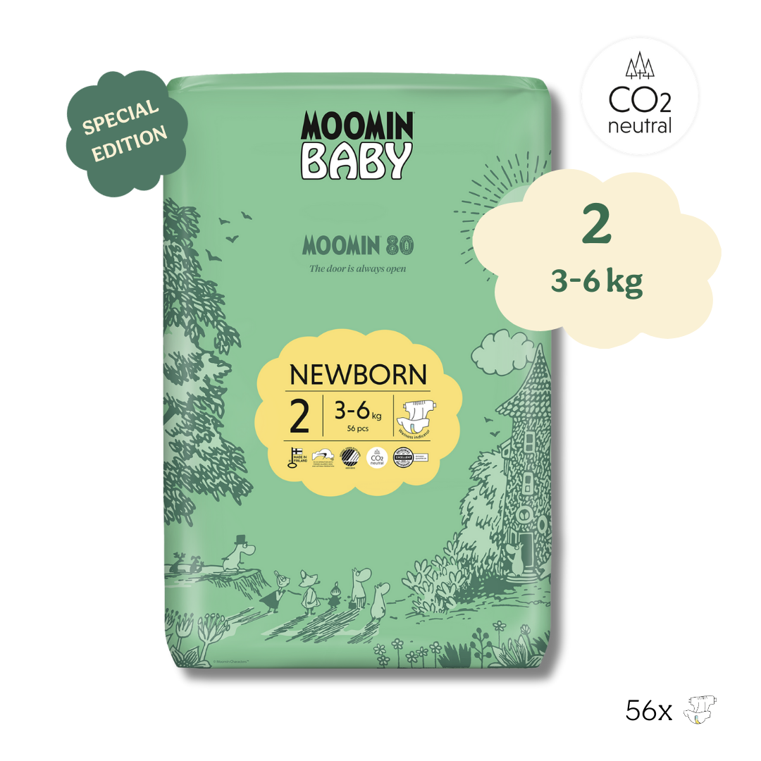 Choose the right size based on the weight of your child. The Moomin baby diapers and diaper pants are certified with the Nordic Swan Ecolabel. They have been developed in collaboration with the Finnish "Allergy and Asthma Federation" and are dermatologically tested. The Moomin Baby diapers do not contain perfume, lotion, latex, formaldehyde or phthalates!