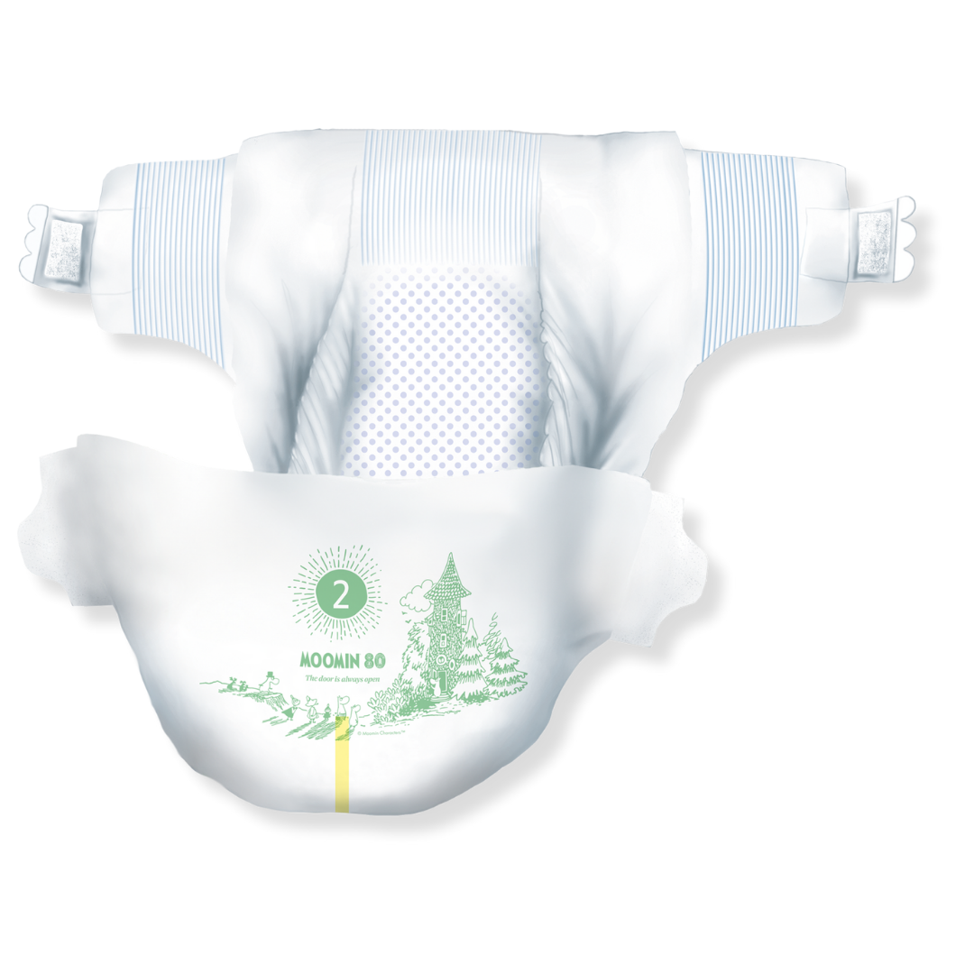 The Moomin diapers and diaper pants are produced using 100% renewable energy. The diaper factory has switched to renewable hydropower and solar energy is supplied to the factory using its own power cables.
