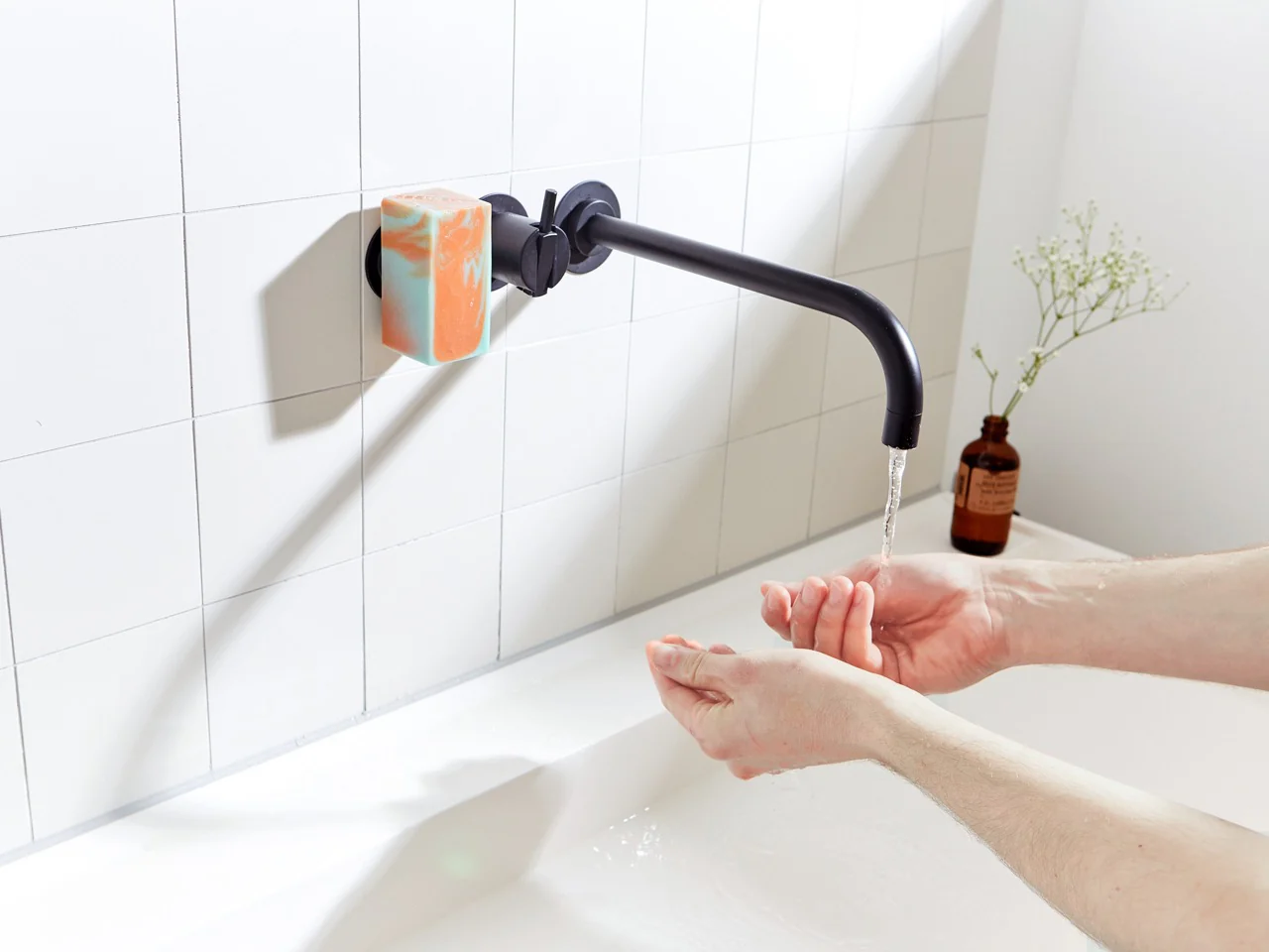 - Then, hang the bar on the magnetic holder and enjoy dry, clean soap every time you use it.