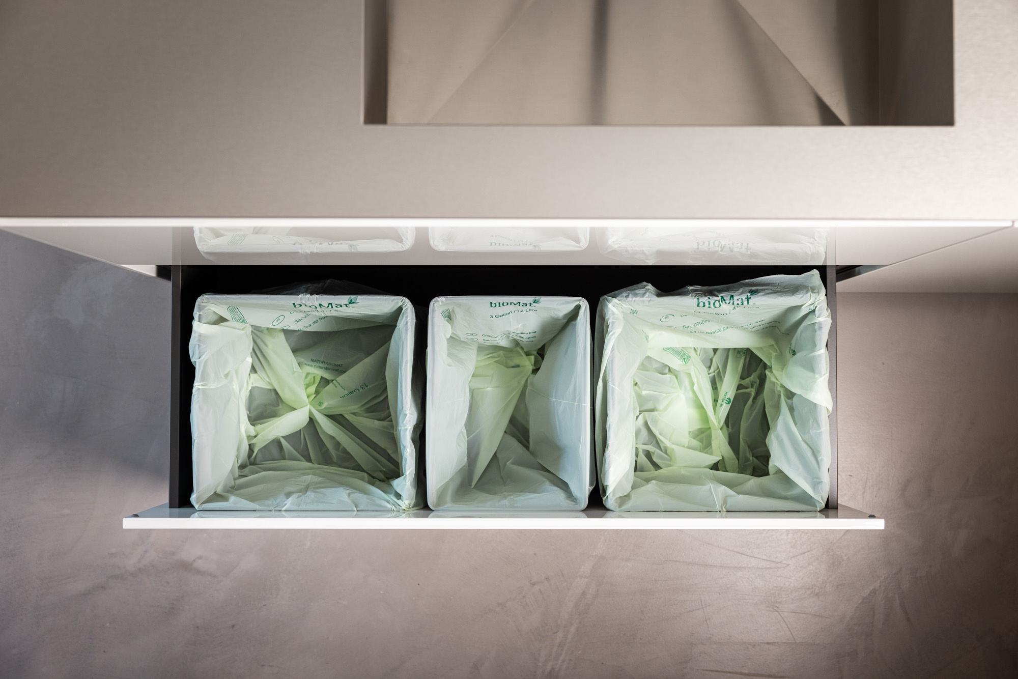 Les sacs de conteneur compostables sont fabriqués à partir d'amidon et gardent les poubelles et les bords propres. Cela prévient les mauvaises odeurs et les mouches en été. Un autre avantage est que les sacs ne gèlent pas en hiver et ne se déchirent donc pas.