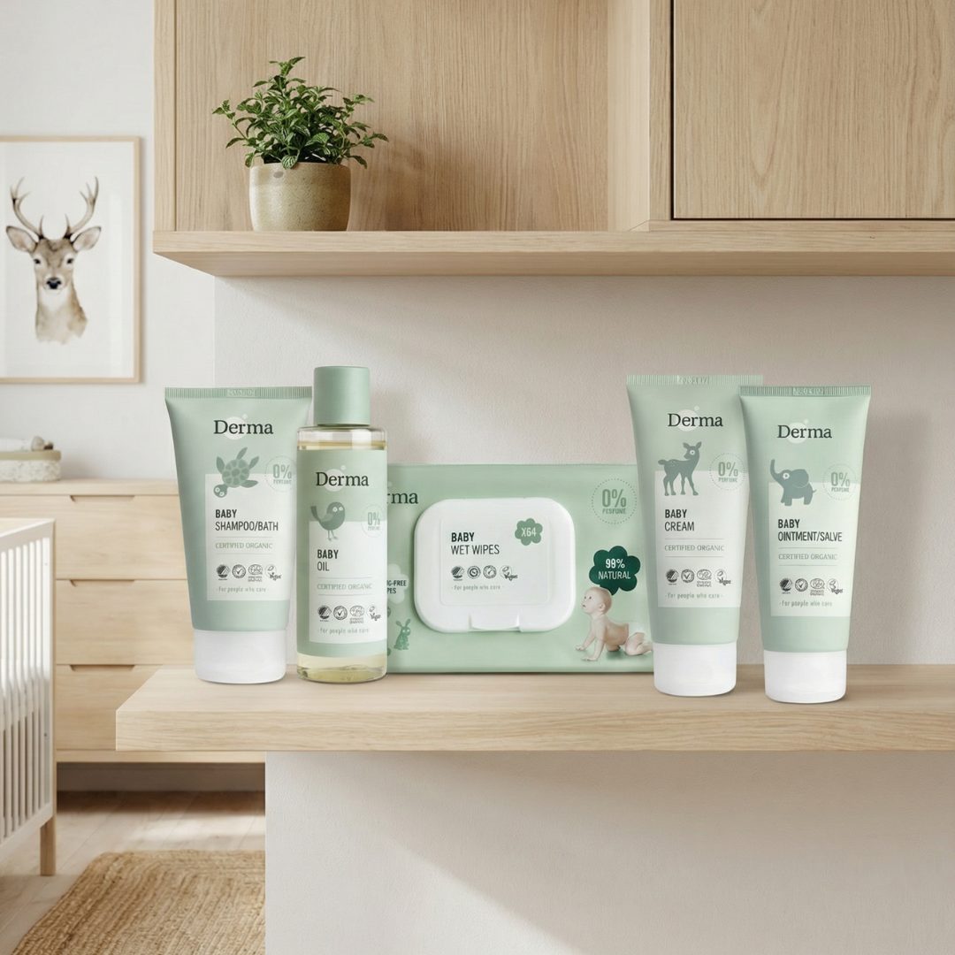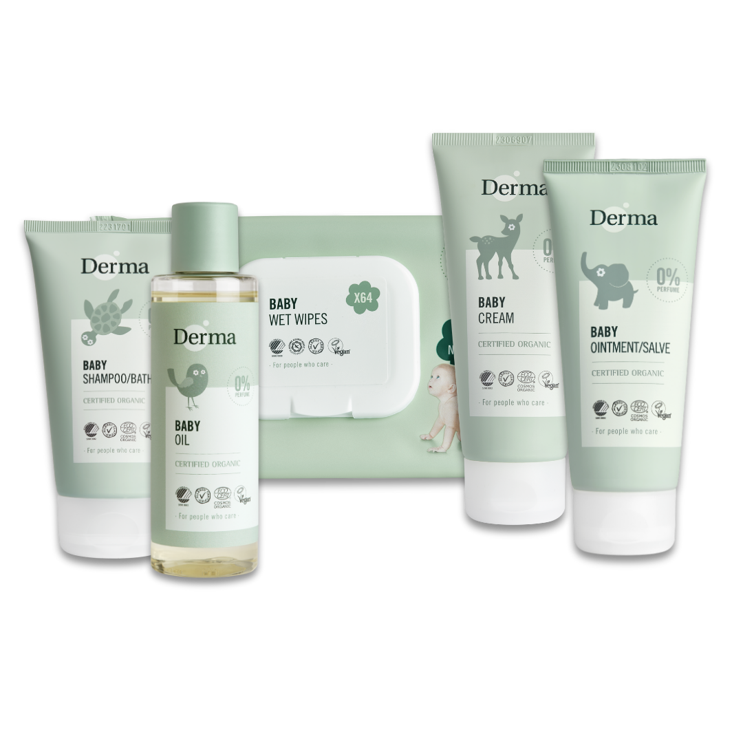- Lingettes pour bébé Derma Eco (64 pièces) – lingettes extra douces, sans parfum, avec l'écolabel Nordic Swan.