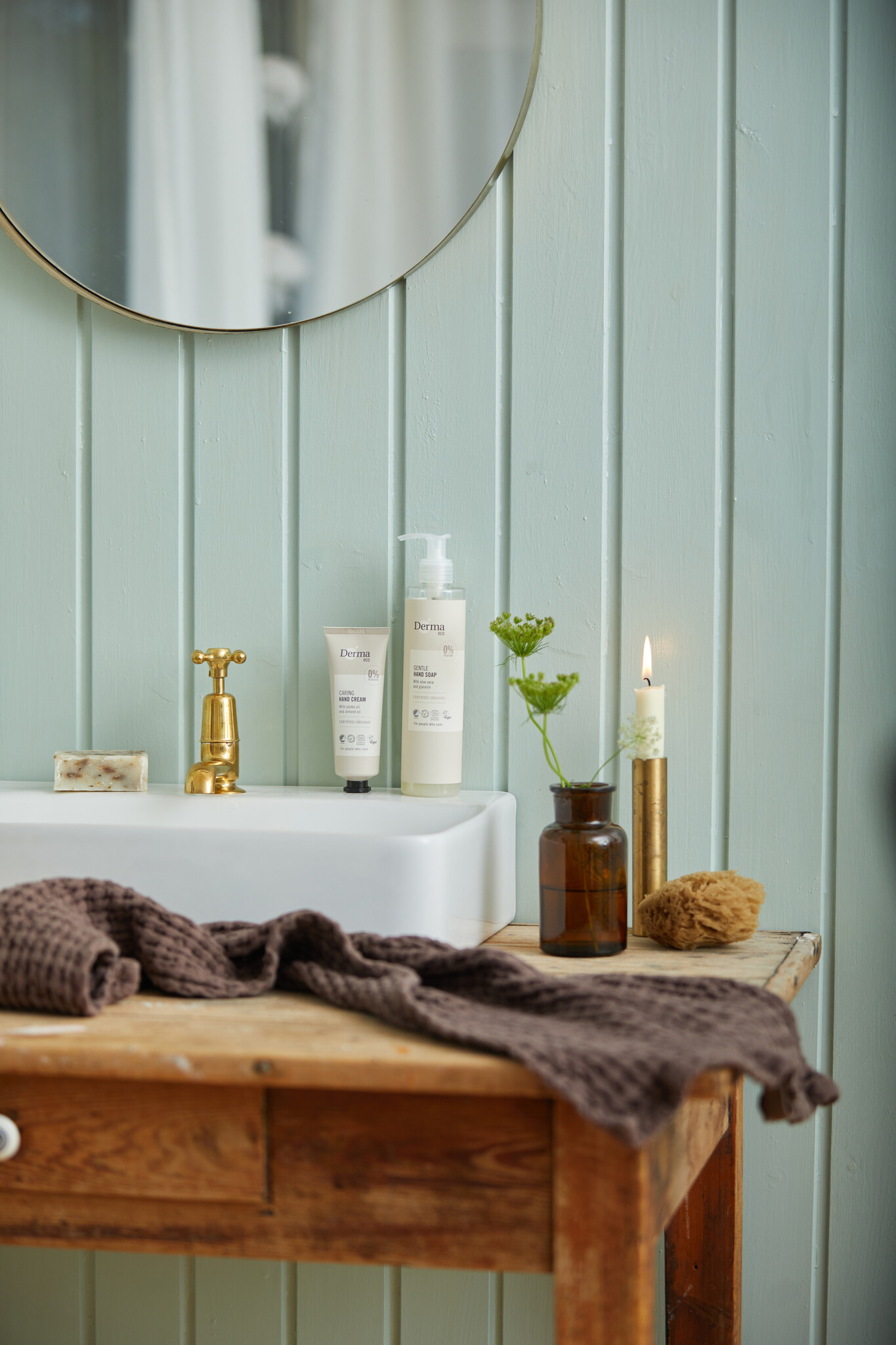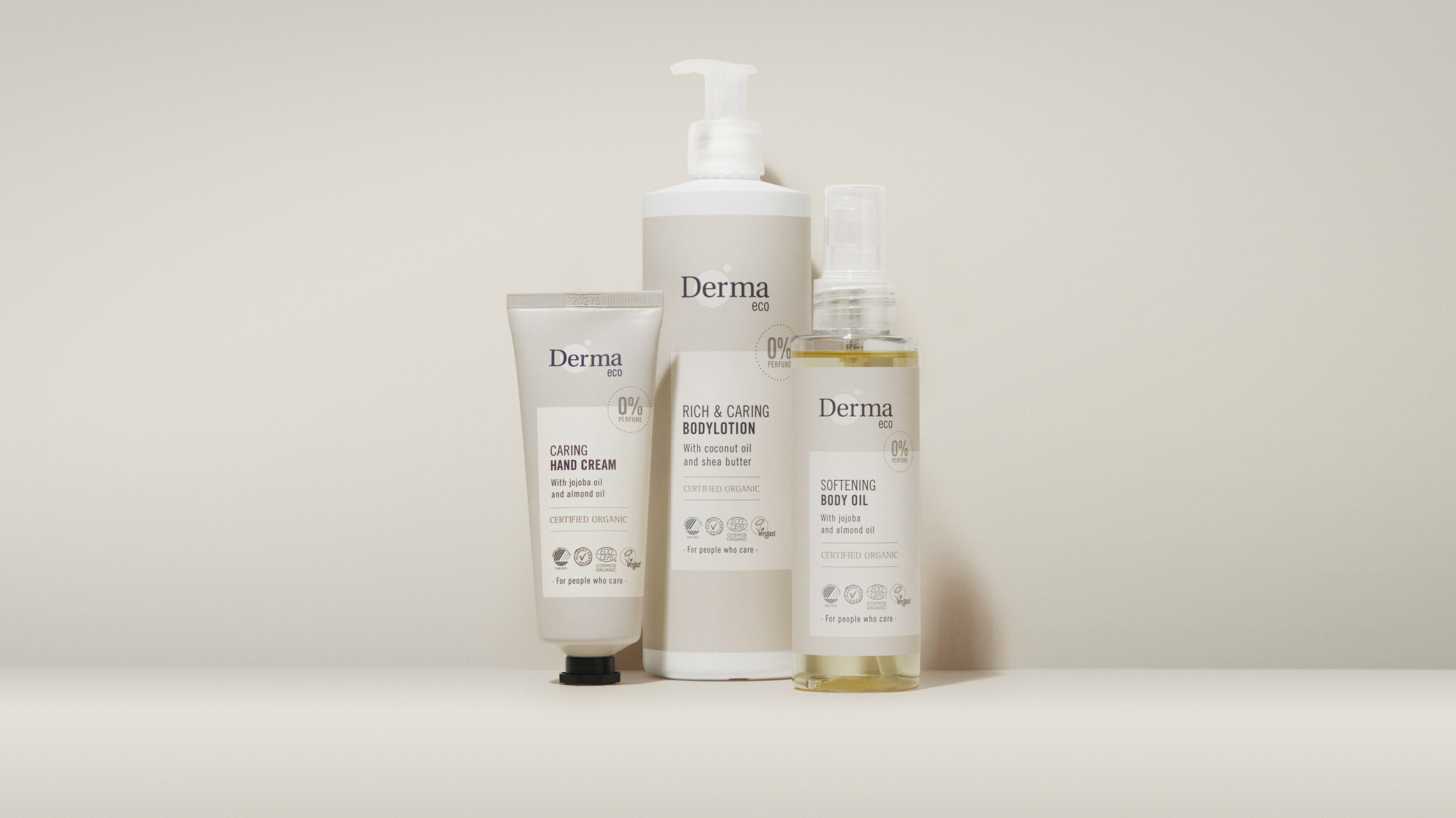 La crème pour les mains Derma Eco contient de la vitamine E, de l'huile de jojoba biologique et de l'huile d'amande pour protéger contre la perte d'hydratation et maintenir l'élasticité naturelle de la peau.