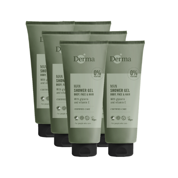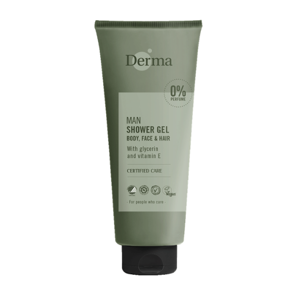 De 3 in 1 geurvrije douchegel van Derma Man bevat geen parfum, parabenen of kleurstoffen en minimaliseert daarom de kans op allergieën en overgevoeligheidsreacties. Daarnaast bevat de gel voedende vitamine E en voedende ingrediënten, die huid en haar zacht en effectief reinigen en niet laten uitdrogen.