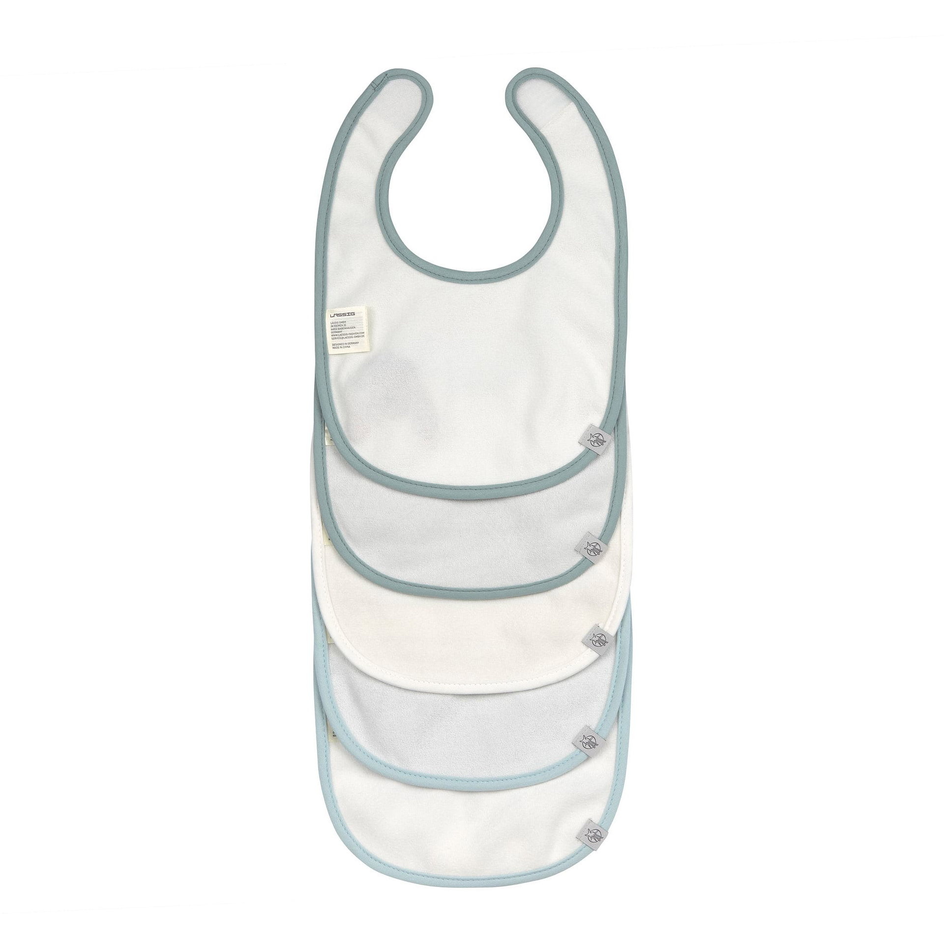Met vijf slabbetjes in één set heb je altijd een frisse klaar liggen. Ideaal voor thuis, onderweg of in de opvang – precies wanneer je het nodig hebt.