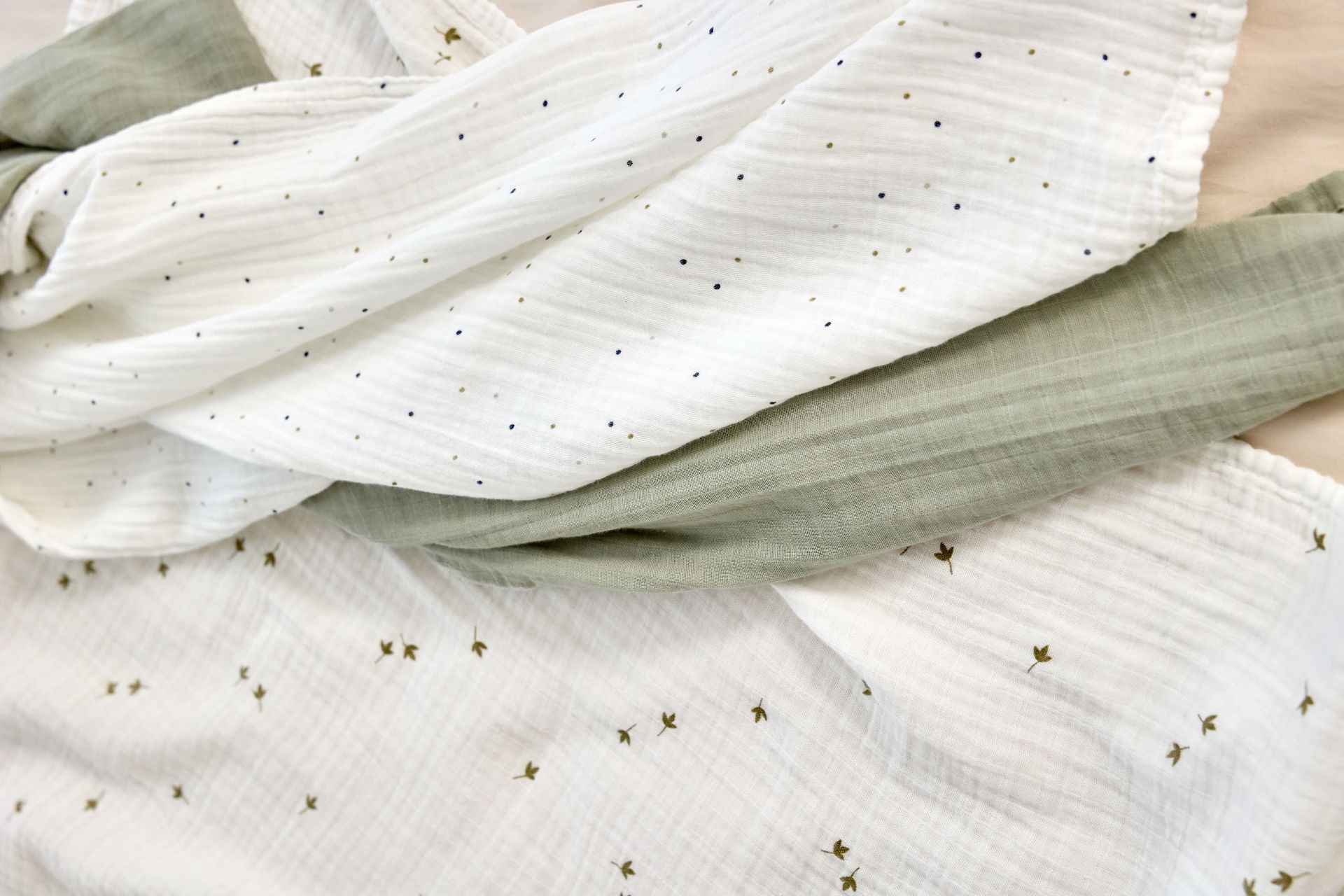 De vrolijke natuurprint maakt elk doekje tot een vrolijk statement in de babykamer. Elk product is natuurlijk: dankzij de milieuvriendelijke productie kunnen kleur en textuur licht variëren. Dit maakt elke doek uniek.