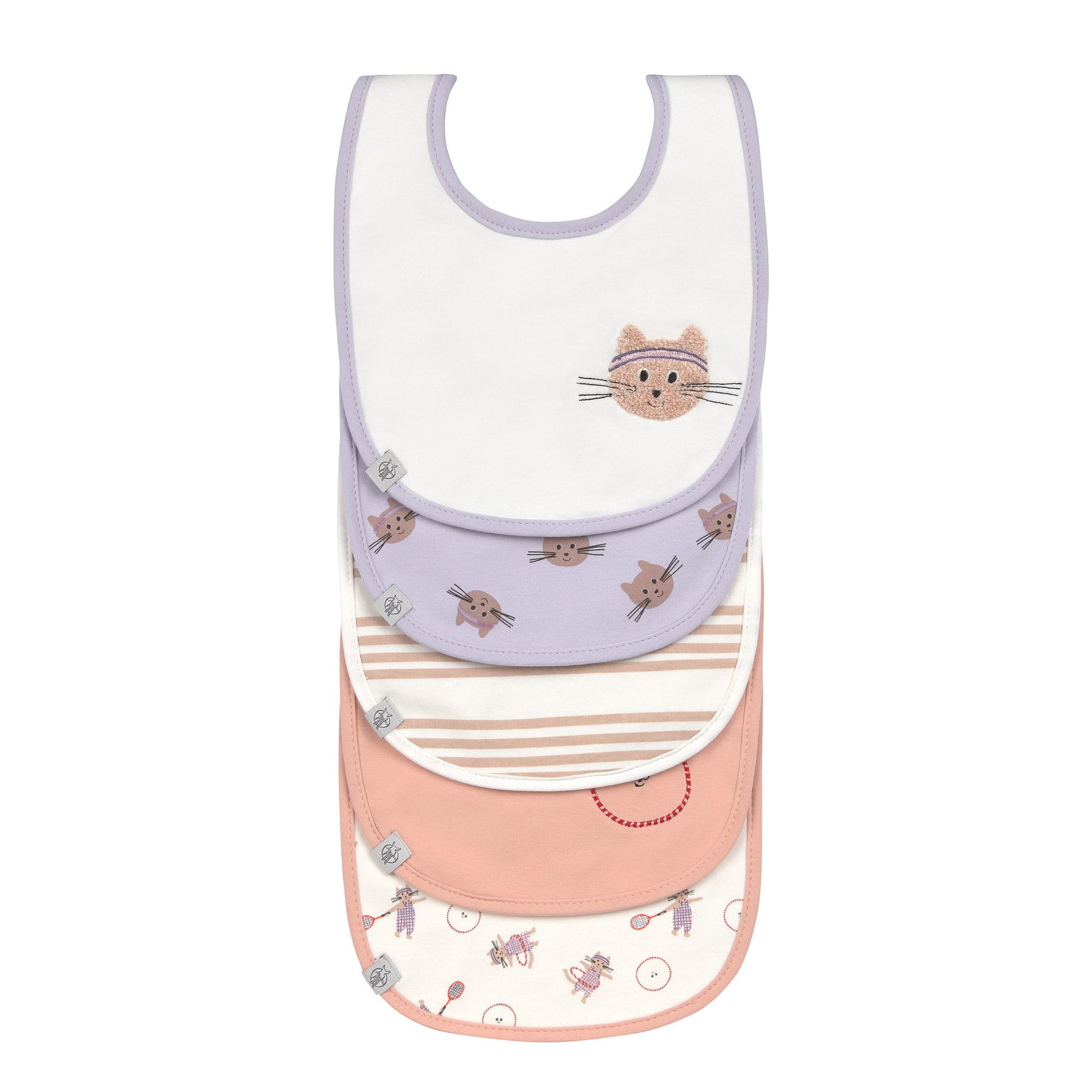 Met vijf slabbetjes in één set heb je altijd een frisse klaar liggen. Ideaal voor thuis, onderweg of in de opvang – precies wanneer je het nodig hebt.